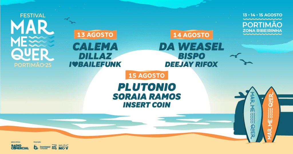 Cada agosto, la zona ribeirinha de Portimão, en el Algarve, se llena de ritmo con el Festival Mar Me Quer, un evento joven y con conciencia ecológica. Este festival combina buena música, ambiente playero y un fuerte compromiso con la sostenibilidad. En 2025, el cartel incluye artistas como Dillaz, Da Weasel, Plutonio, Soraia Ramos e Insert Coin.