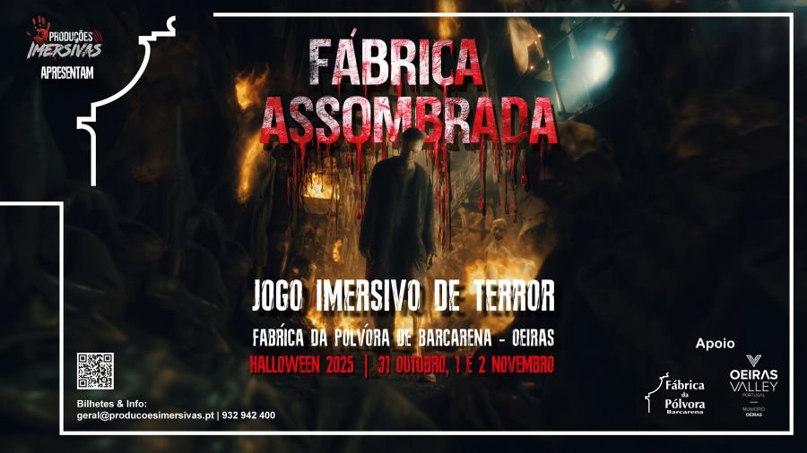 La antigua Fábrica da Pólvora de Barcarena se convierte en el escenario de una experiencia inmersiva de terror inspirada en hechos históricos reales. Una mezcla entre escape room, teatro inmersivo, pasaje del terror y juego live action. Para los que buscan una experiencia de Halloween extrema, profesional y verdaderamente aterradora, con producción cinematográfica y actores profesionales.